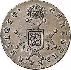 -Reverso: Escudo coronado de Navarra, P en ambos lados; "RELIGIO · CHRISTIANA · ". |